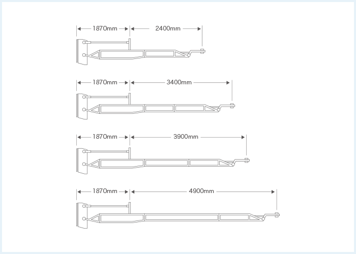 | 前方アーム長(mm) | 2400 | 3400 | 3900 | 4900 |
